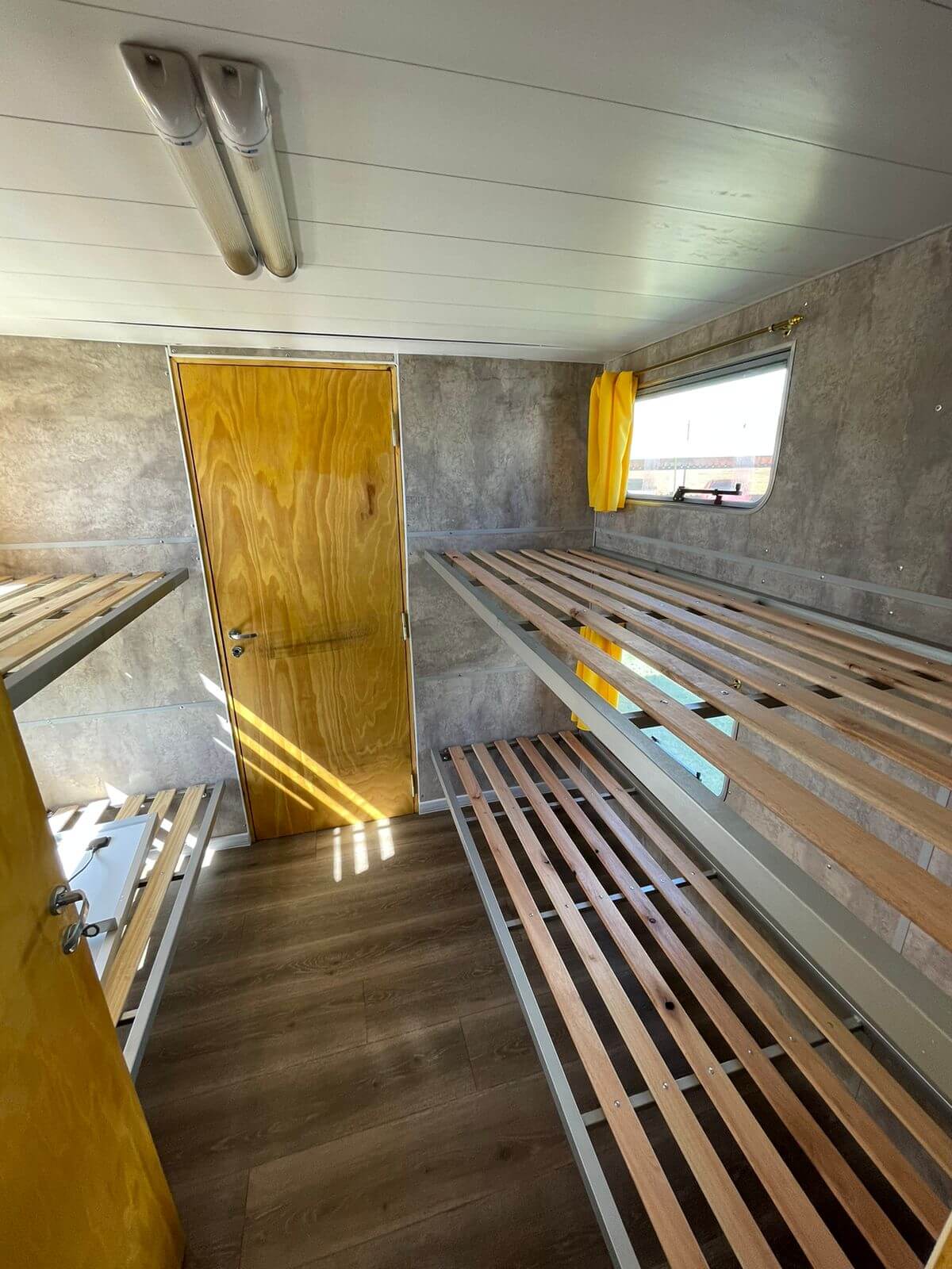 Dormitorio 4 camas, cada cucheta con su correspondiente ventana, mosquitero y cortinas